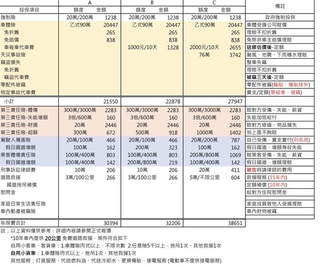 輩們的意見,我會考慮加保天災和訴訟,可是比較苦惱的是乘客和拖吊要不要再調升一些,