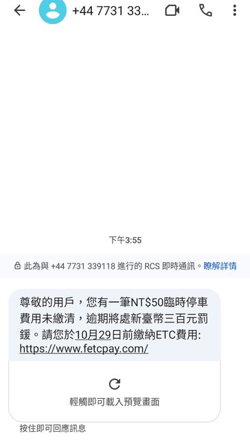 推 pippen456 : 看用語就知道是對岸搞的詐騙簡訊 10/28 16:14