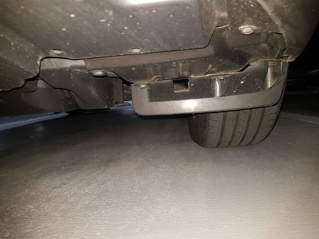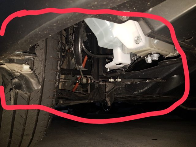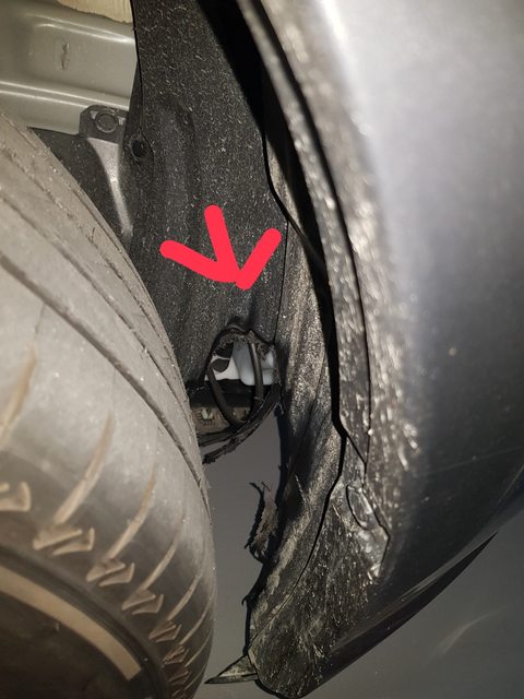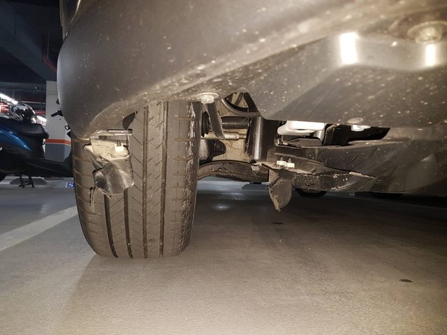 今日上高速公路,輪胎傳來嘎嘎聲,下交流道才發現右前輪好像有塑膠板破裂了,跟左邊輪