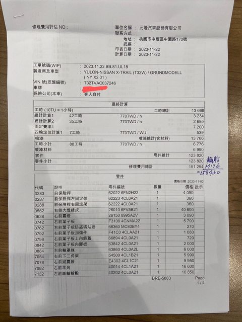 → hanasiro : 維修明細四頁你只拍一頁來喊貴 11/22 16:00