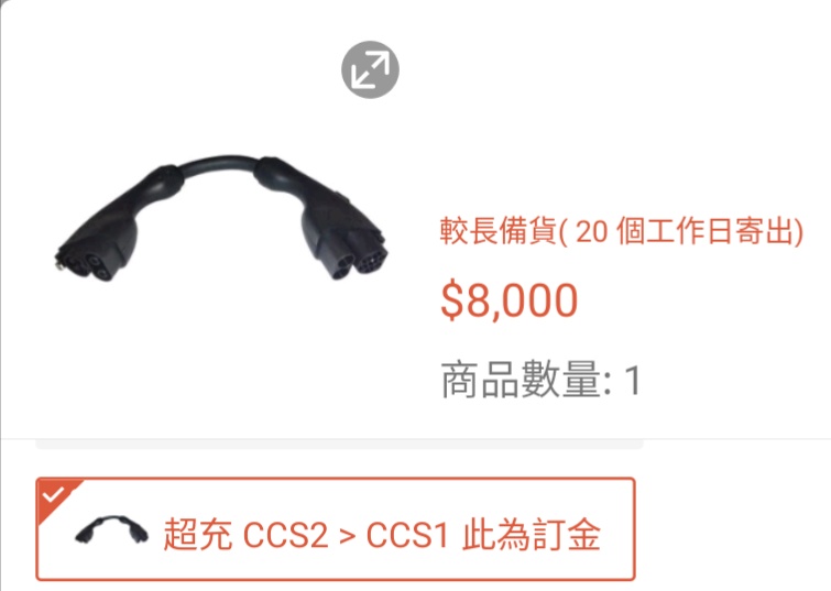 → Killercat : 轉接頭是好買啦 CCS1=>2六千多 2=>1目前台灣沒看過 02/21 21:30