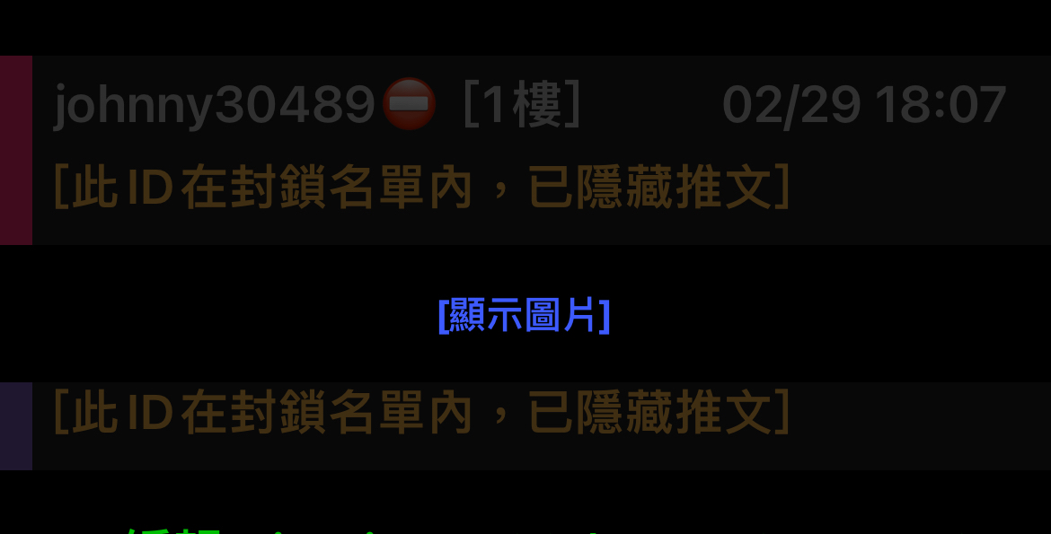 → johnny30489 : 嘻嘻 一下封鎖一下又想看別人說什麼 好可憐啊 02/29 18:08