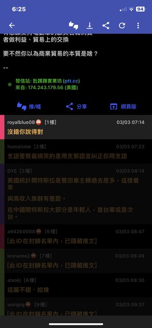 : 我周邊開特斯拉的幾乎都是台清交 + 美國Top 30這種等級的高收入碩博士,工程師居多