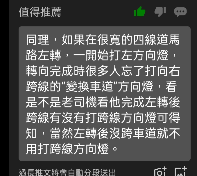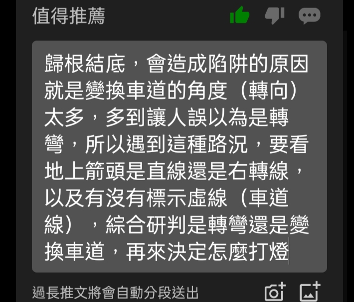 → wanderchang : 除了這種特例 還是建議照行進方向打燈啦 畢竟趕時 03/05 21:27