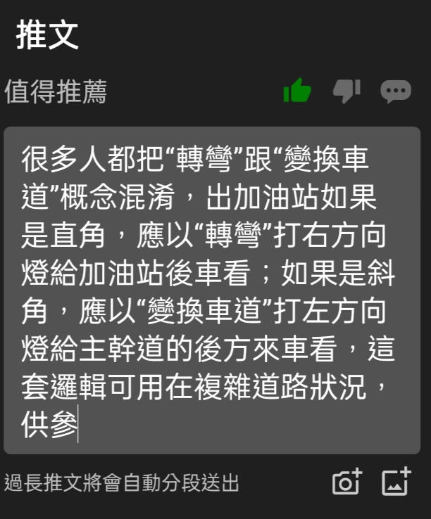 推 knik119 : 這裡燈給後車看沒意義。反倒要跟左邊來車示意我要出 03/05 22:51