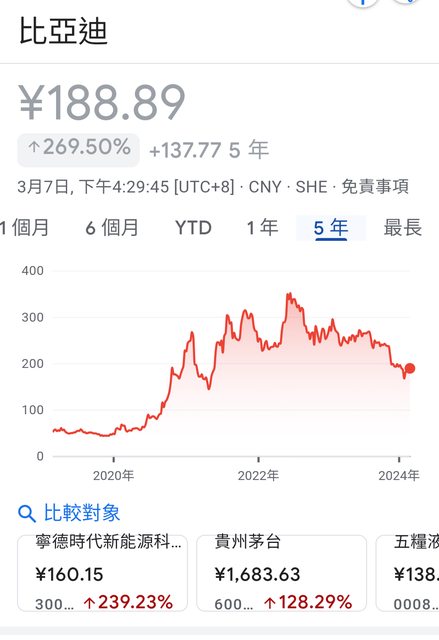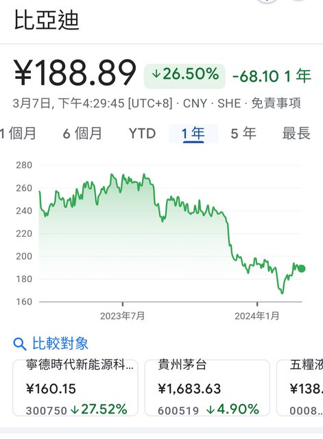 比亞迪最近一年來的股價好像也有點往下