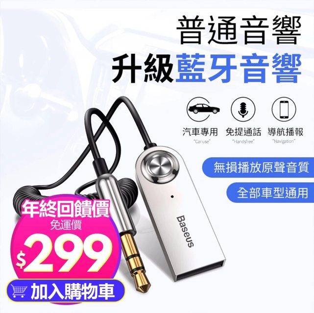 推 MALAMO : 倍思這款蠻不錯的 直接USB插著就充電 一端AUX直接插 03/16 09:36