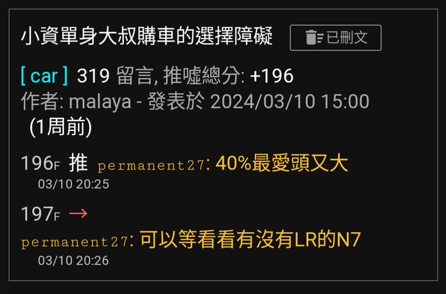 ※ 文章網址: https://ptt-web.org.tw/car/M.1710752408.A.389
