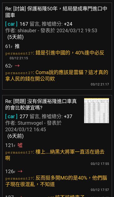 推 peoples: 有錢人為啥都想包養 03/19 07:46 噓 iamandre : 然後呢 人家汽車市場比台灣正常多了 也是全世界規 03/19 08:12