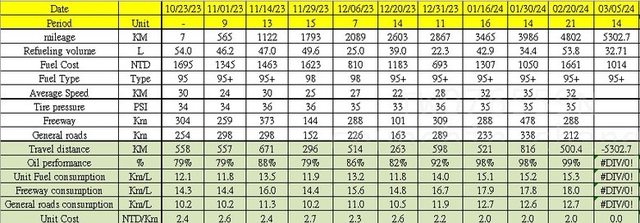 真是高手的問話方式,要持續改善怎麼能不紀錄數據呢,我從新車的第一桶油就開始記錄