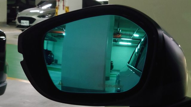 加熱」之外,還多了「親水膜」、「防眩光」跟「LED方向燈」,同時採用了「廣角曲率