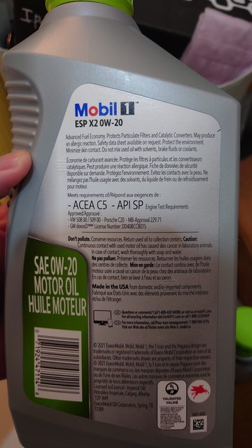 機油型號維持跟上次一樣,使用符合手冊建議規範的Mobil 1 ESP X2 0W20。