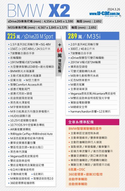 → a1280547: 你這比的也奇怪 很像拿NX還XC60去比X2價格 03/27 12:38