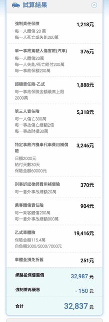 推 canlest: 乘客體傷不用吧? 然後好像有300的折扣碼 再找找吧 03/27 12:04