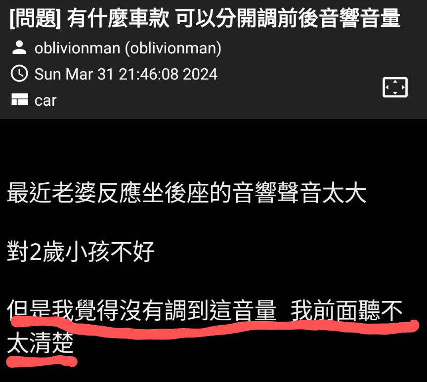 → justtitan: 能前後座音量能有巨大差別?除非像日本計程車,前後座 03/31 22:51