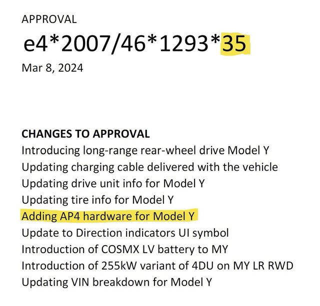 推 lankos: Model Y HW4已於歐洲獲得認證,應該很快會生產 04/01 02:36