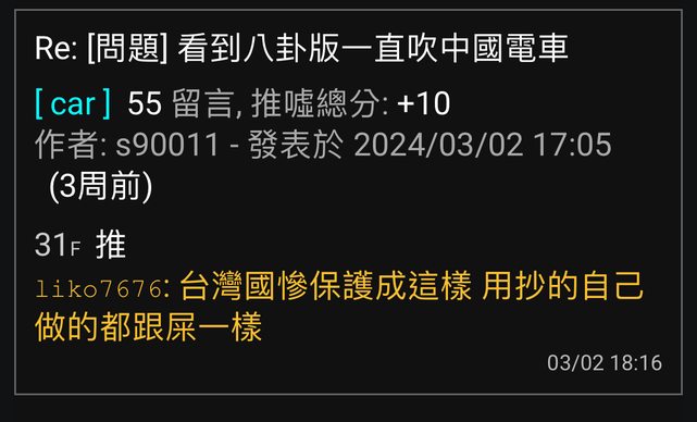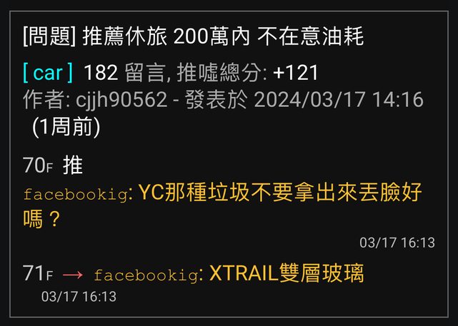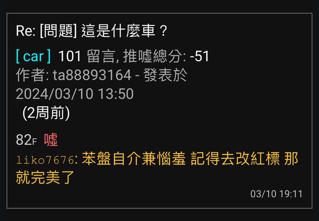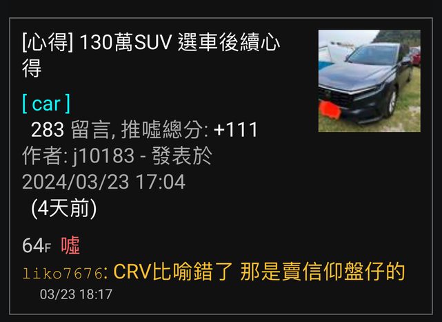 ※ 文章網址: https://ptt-web.org.tw/car/M.1711956617.A.3F7