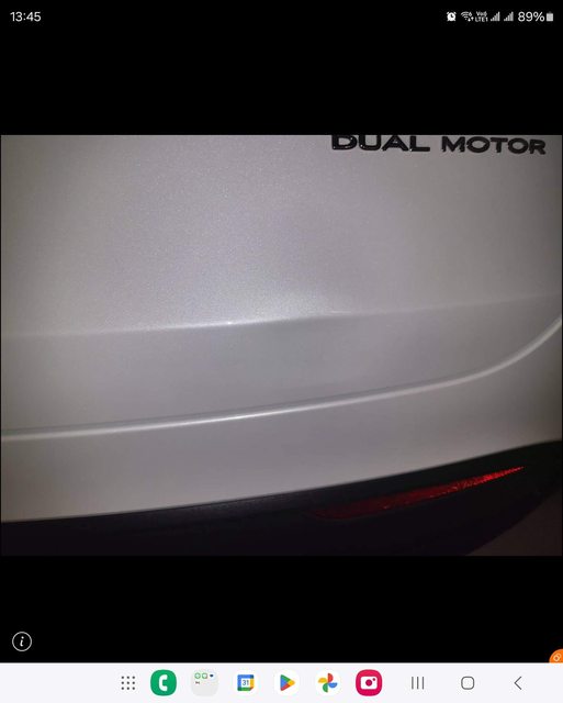 Model Y 後行李箱下緣擠壓到圓柱產生的凹痕