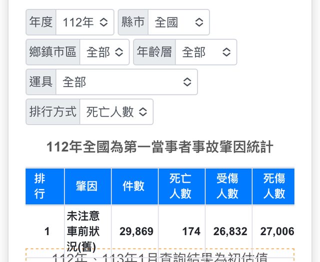 去年未注意車前狀況死的才174個 我覺得還好
