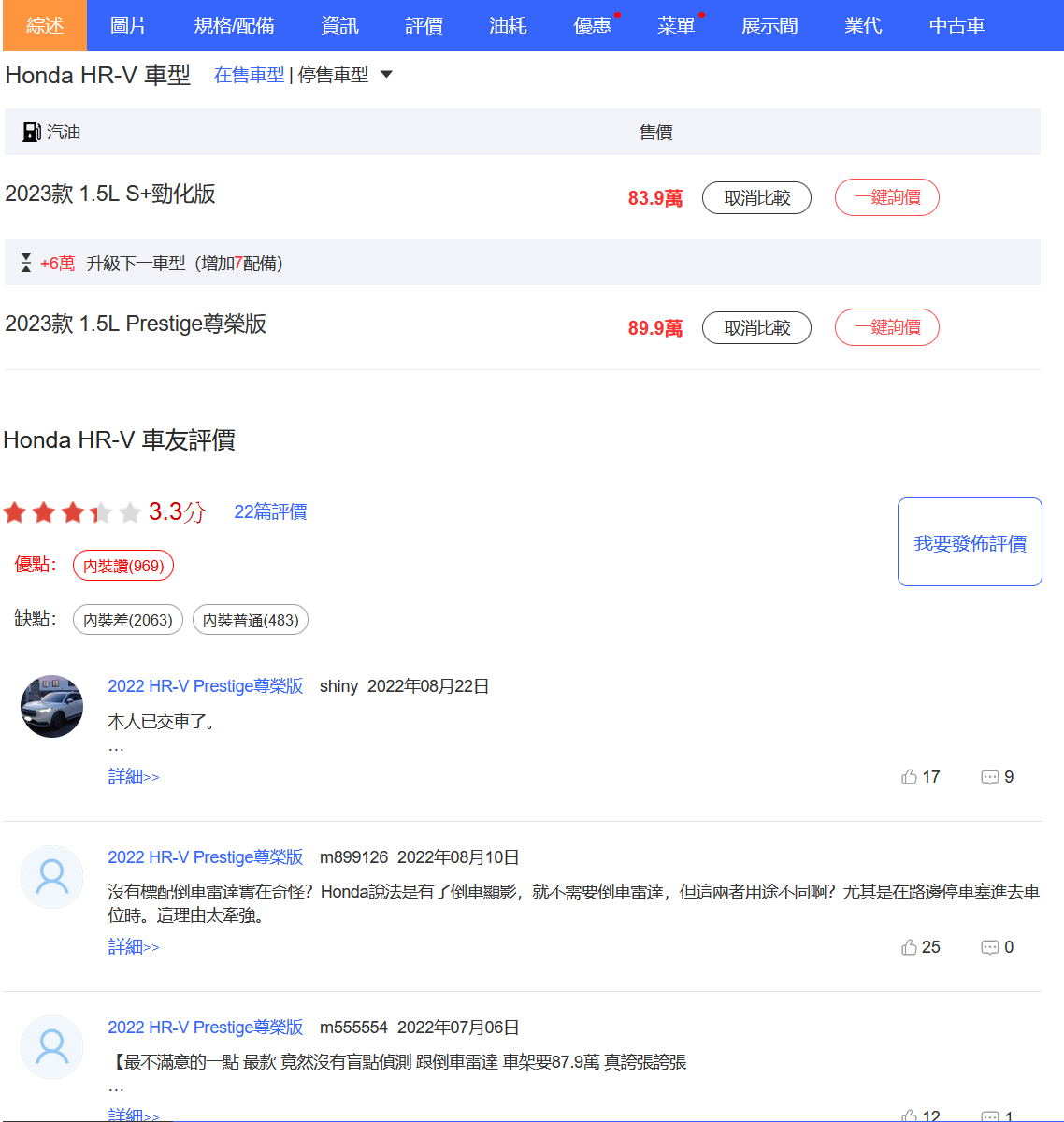 推 evo960806: 去年12月本來要買HRV價錢真夠硬89.9折兩萬配備打9折基 04/17 23:20