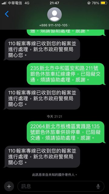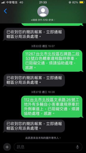 如題,拜之前板上大大分享,現在都懶得檢舉直接簡訊報案,今天突然發現新北市跟台北市