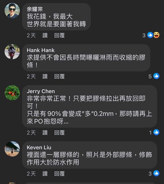 推 motorbird: 沒有漏水,這樣算膠條壞掉嗎? 04/23 07:33