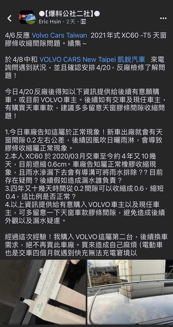 推 maltum: V40車主啦,建議大家也檢查四門車窗膠條 04/23 07:44