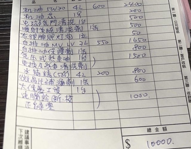 → aa0968: 機油那項目是怎麼回事 單瓶600$欸04/23 17:07