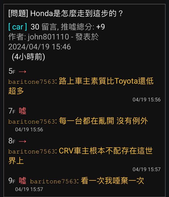 → baritone7563: CRV車主根本不配存在這世界上04/19 15:57