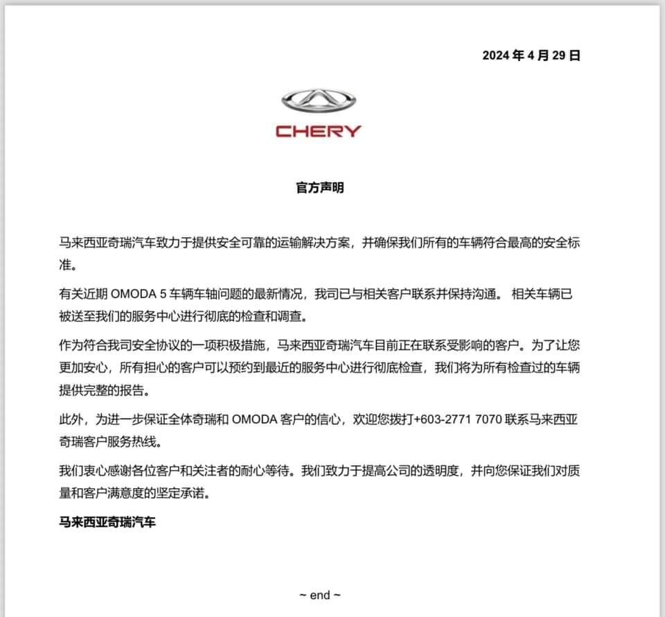 → louie83279: Omoda5的問題不只斷後軸,之前是高速煞車失效,再之前 04/30 15:50