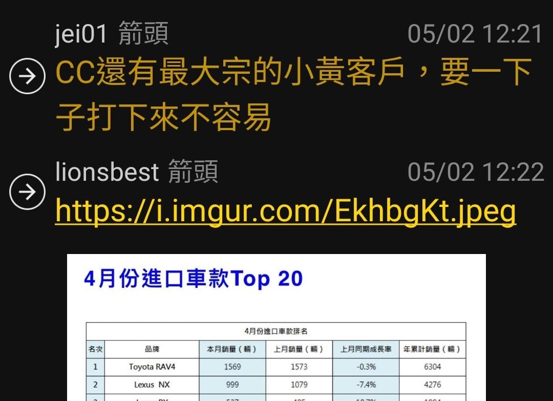 推 TaiwanNeko: CC、YC、神A、RAV4都是靠小黃撐起來的 05/02 12:37