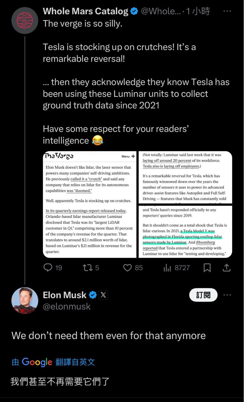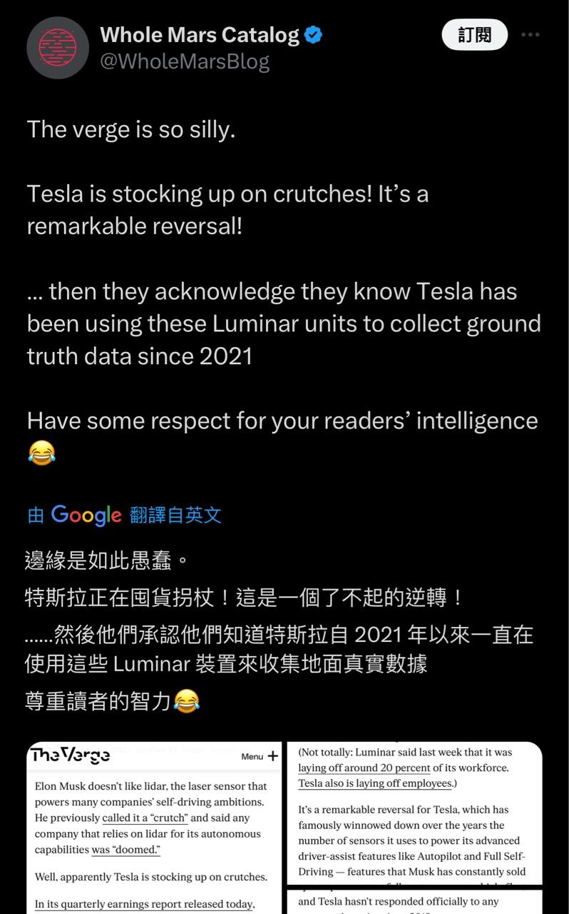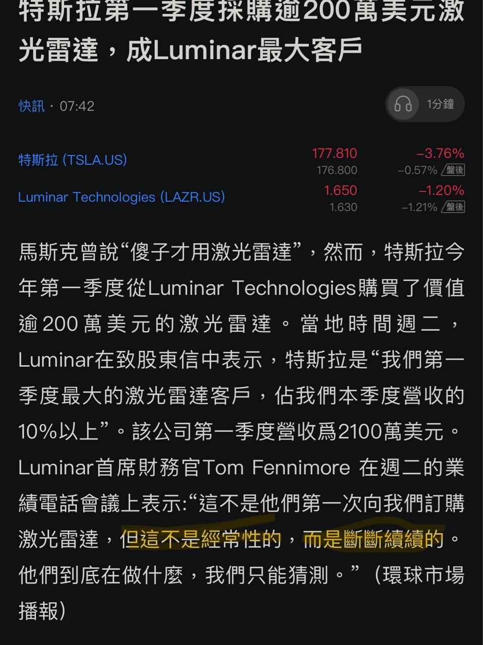 → zyx12320: 現在才知道特斯拉有在買光達的特黑,功課做得不夠喔 05/08 13:26