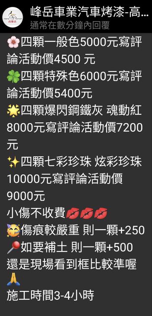 推 ives522: 我去烤過輪圈 品質不錯 之後換名字有次損傷掉漆也去烤單 05/09 18:39
