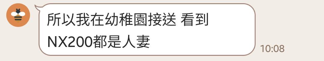 推 simonlowtall: Nx200和ES長輩居多05/10 14:41