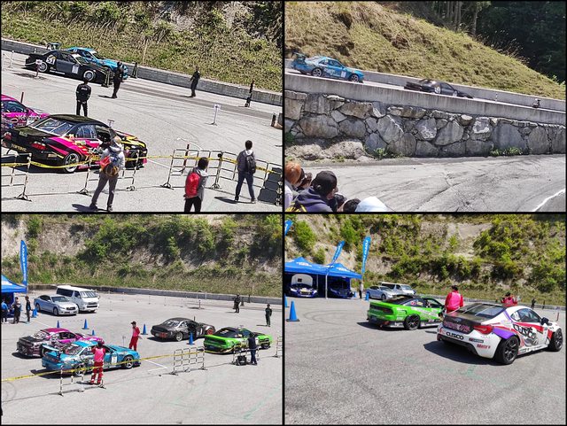 在停車場下車後就聽到遠方一堆引擎聲轟隆作響、白煙飄散,原來參賽選手們更早到,一
