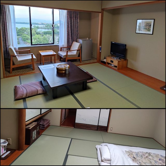 到了琵琶湖旁的飯店已經是晚上了,長時間駕駛手排車,加上沒彈簧床只舖一層床墊的住