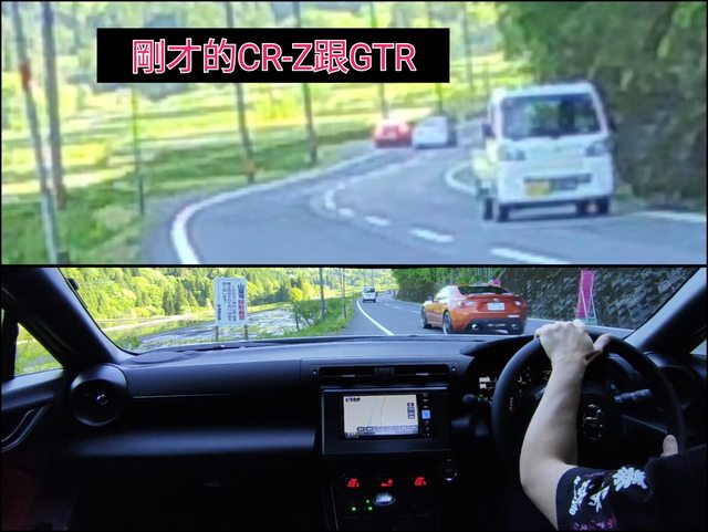後方一輛CR-Z、一輛GTR不知是32還33,有趣的是,沒多久就看到換CR-Z暫停路邊禮讓GTR