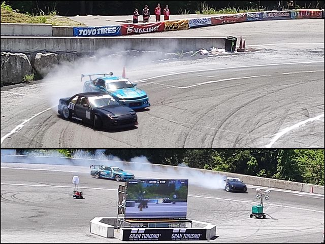 另外觀眾席的位置很高,雖然不知幾層樓高,但車子甩尾甩到連觀眾席都瀰漫著白煙,那