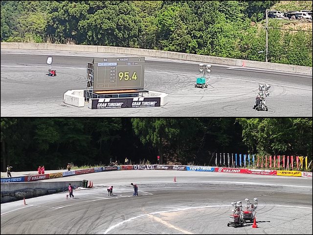 賽事中也有維護時間,工作人員會進場清潔跑道、標線補強重畫等,賽事進行中也有空拍
