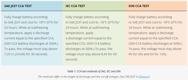CCA(Cold Cranking Amperes) 冷啟動安培,用來描述電瓶冷啟動能力