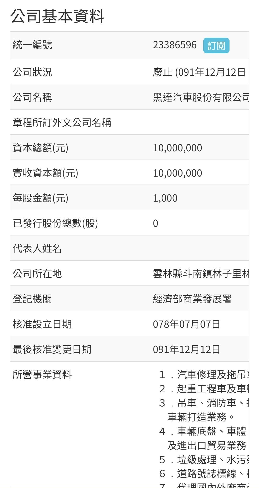 噓 ccc101419: 黑達91年廢止公司營業登記,你拖吊單時間是89年,什麼 05/17 12:18