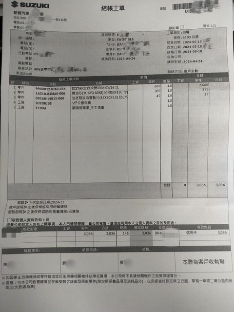 推 Boss1983: 跟我NX第一次保養差不多 05/20 12:04