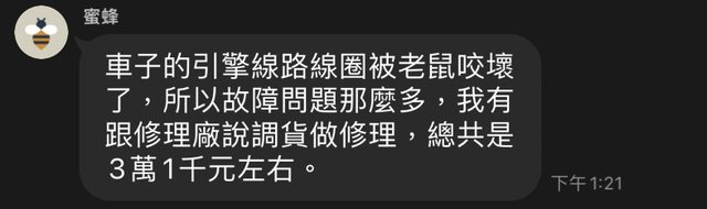 推 YOHOpig: 保固內被老鼠咬壞,車主自費嗎?建議樓主去要照片。05/22 10:51