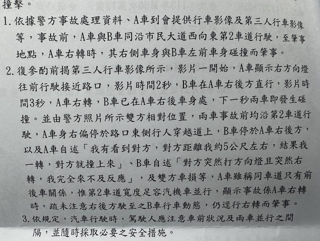 推 F5: 笑死人 第二項就說事故係逕行右轉而肇事 05/22 21:18