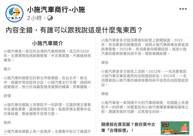 推 lizardc1: 小施太苦了 唯一佛心車商被黑成這樣 05/23 16:30
