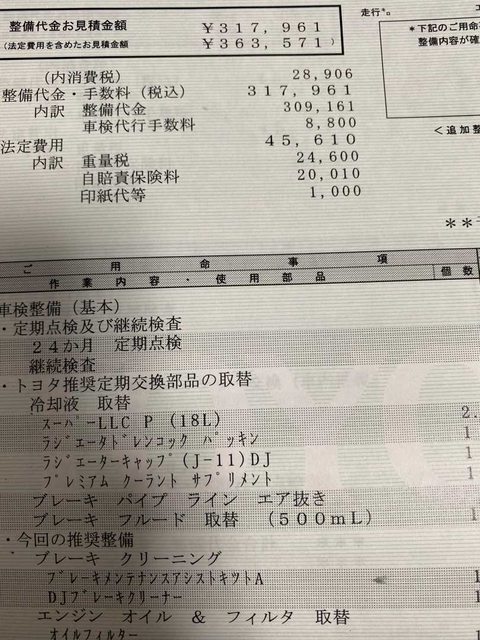 昨日ディラーに行って車検の事前調査で車を持ち込み見積をいただきました。