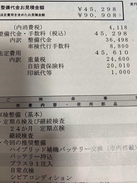 11年目のプリウス車検見積