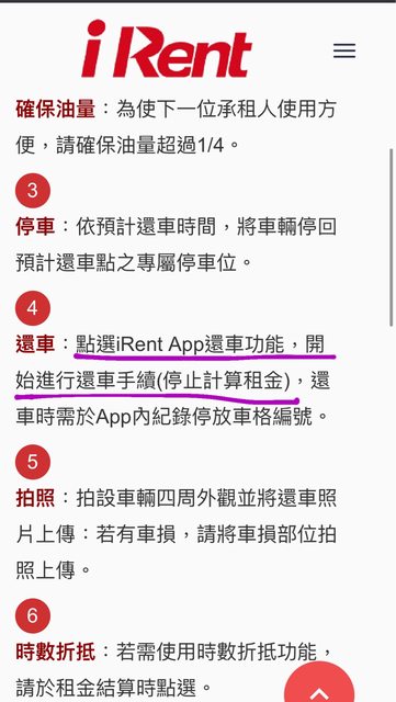 而這有別於iRent是只要點選還車按鈕進入還車拍照流程就停止計算時間