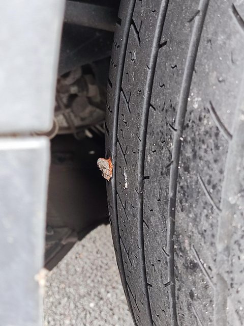 途中也扎到釘子 去路邊的輪胎銀行補胎10000韓元