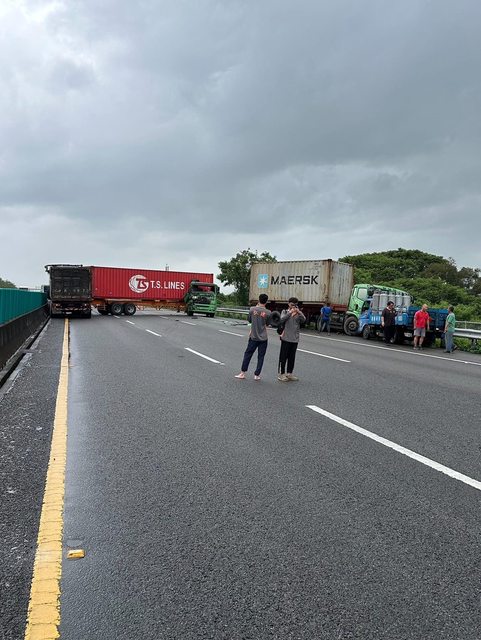→ jhtseng13: 下午走國三好像在台中前後有看到貨櫃車翻覆,四台吊車 06/14 16:27